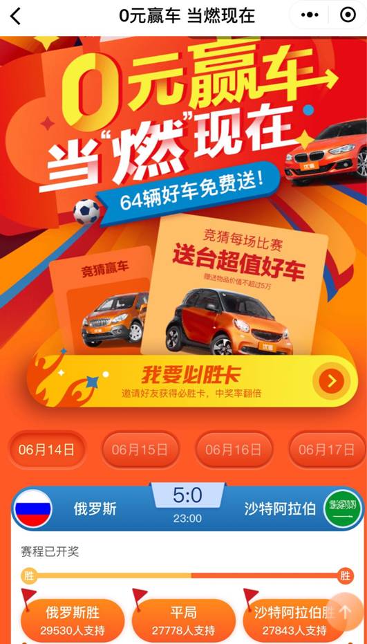 俄羅斯世界杯火熱開賽,優(yōu)信競猜贏車開局紅火