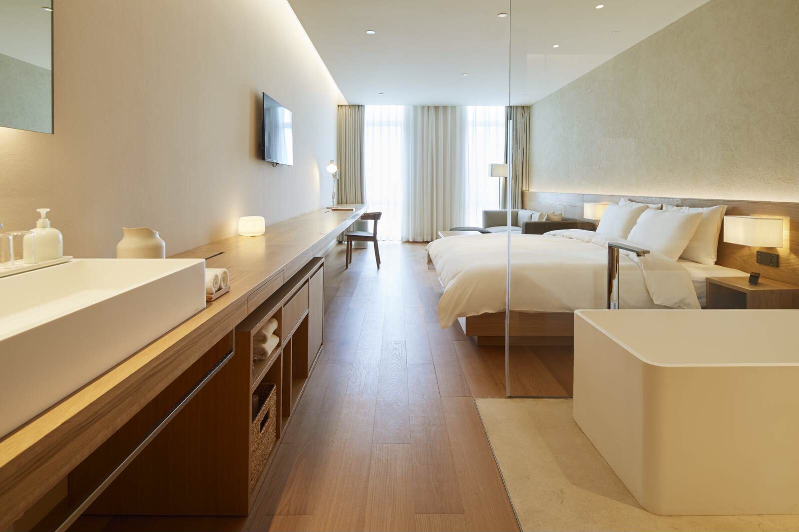 據(jù)悉,MUJI HOTEL BEIJING共擁有6種房型、共計(jì)42間客房,包括面積最小18平米的標(biāo)準(zhǔn)間、最大75平米的套房等多種房型。客房?jī)?nèi)部采用硅藻土、麻、棉、石等傳統(tǒng)沿用的自然素材,為整個(gè)空間打造天然質(zhì)感。素材、家具與燈具等細(xì)節(jié)裝飾充分考慮對(duì)睡眠的影響,省去了繁瑣的裝飾和多余的功能??头?jī)?nèi)的部分家具及裝飾可在位于地下一層的無(wú)印良品北京坊店內(nèi)購(gòu)買(mǎi)。