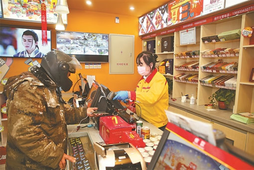 北京銷(xiāo)售北苑加油站做好防疫的同時(shí),提供細(xì)致的服務(wù)。張旭 攝