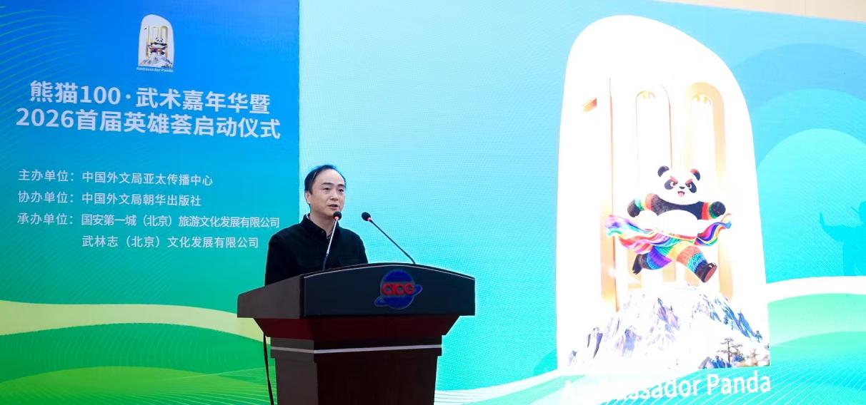 中國外文局亞太傳播中心總編輯趙珺在致辭中表示:“‘十五五’規(guī)劃建議明確提出“文化繁榮興盛是中國式現(xiàn)代化的重要標(biāo)志”。中國外文局亞太傳播中心發(fā)起舉辦“熊貓100?武術(shù)嘉年華暨2026首屆英雄薈”活動,創(chuàng)新融合熊貓與武術(shù)兩大文化標(biāo)識,旨在搭建一個集體育競技、文化展示、產(chǎn)業(yè)合作與國際交流于一體的綜合性平臺,希望能夠?qū)崿F(xiàn)三大愿景:一是以武術(shù)為橋,弘揚中華優(yōu)秀文化,彰顯人類共同價值;二是以熊貓為媒,構(gòu)建國際交流新平臺,增進(jìn)理解與認(rèn)同;三是以內(nèi)容為根,打造武術(shù)傳播新生態(tài),拓展影響邊界,推動武術(shù)文化國際傳播邁入新階段。