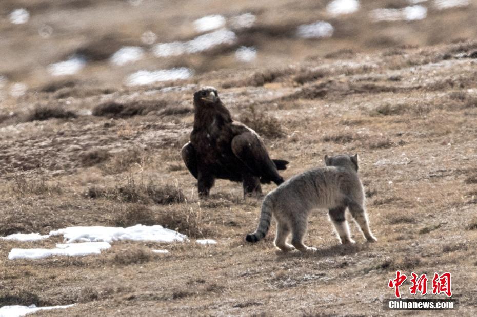 兔猻遇到草原雕。徐永春攝