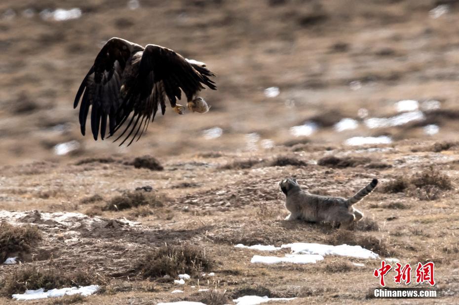 兔猻捕捉到鼠兔 卻遭草原雕“打劫”