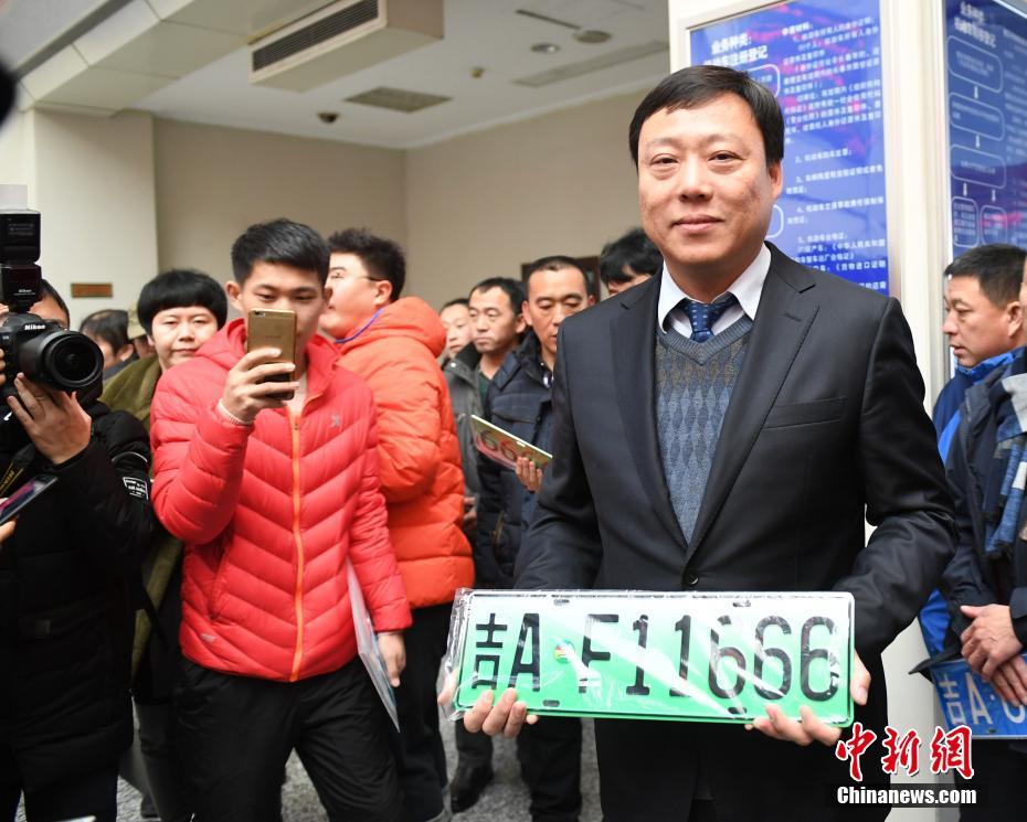 11月20日,吉林省長春市發(fā)出吉林省內第一副新能源汽車專用號牌。中新社記者張瑤攝