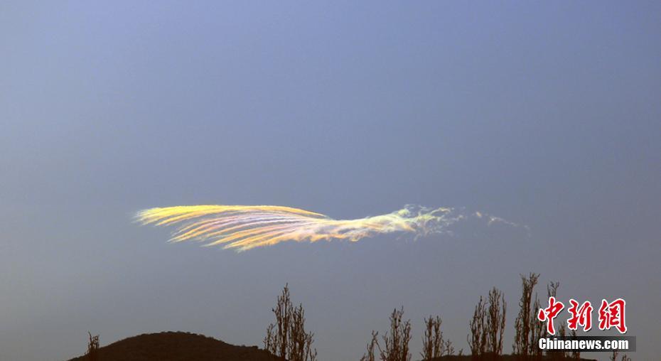 新疆天池出現(xiàn)五彩云霞 如羽翼般絢麗多彩