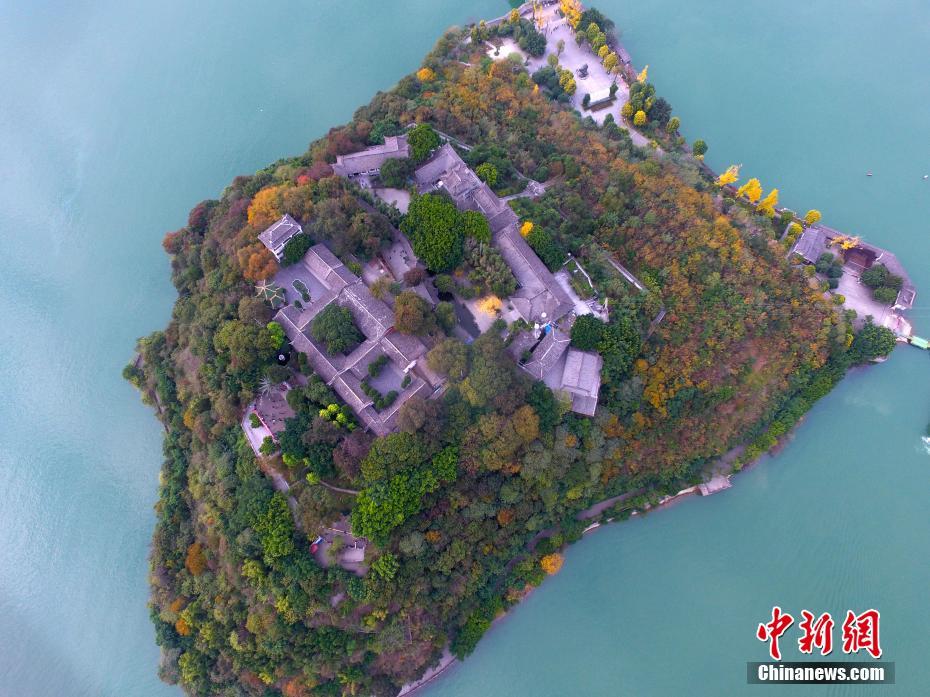 12月4日,記者航拍三峽庫(kù)區(qū)奉節(jié)縣白帝城變美麗島嶼。三峽工程175米蓄水成功后,四面環(huán)水的白帝城形成了一個(gè)美麗的島嶼,島嶼上各類(lèi)植物顏色五彩繽紛,成了三峽庫(kù)區(qū)一道獨(dú)特亮麗的風(fēng)景線。陳超攝