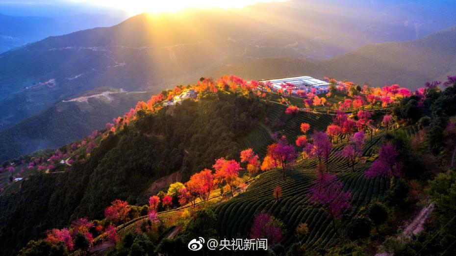 近日,云南大理無(wú)量山,2000多畝冬櫻花正值盛花期。漫山遍野的冬櫻花,起伏于綠色茶壟間,美不勝收。這里的冬櫻花花期短暫,卻別有姿態(tài)。央視記者李常明報(bào)道圖片來(lái)源:央視新聞微博