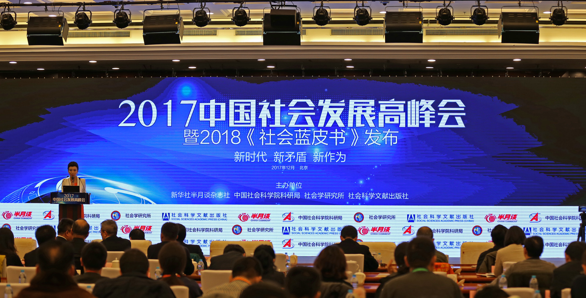 2017年12月22日,由新華社半月談雜志社、中國社科院科研局、中國社科院社會學研究所、社會科學文獻出版社聯(lián)合主辦的“2017中國社會發(fā)展高峰會暨2018社會藍皮書發(fā)布”在北京召開。財政部副部長朱光耀、新華社副社長劉正榮、中國社會科學院副院長李培林出席會議并致辭。