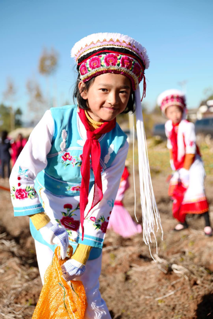 扛起鋤頭,拿起鏟子,背上竹筐,戴上棉線手套……WOW會員們還隨孩子一起來到田間,分成五支隊伍,體驗(yàn)起了農(nóng)戶生活?!巴谕炼沟臅r候保護(hù)好你們,也保護(hù)好土豆?!痹诖逦瘯幌哪臍g迎詞后,一場熱火朝天的挖土豆大賽開始了。為了全力迎接這場愛心賽,孩子們還特地穿上了鮮艷的白族服,戴上寓意風(fēng)花雪月的白族帽。