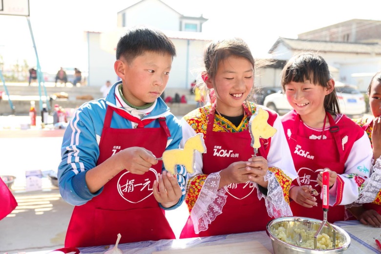 午后,作為此次活動的又一“重頭戲”,一場“創(chuàng)意土豆趴”在太平村中心完小熱鬧開啟。群龍取土豆、WOW桶運(yùn)土豆、快刀削土豆、土豆造型大PK等游戲環(huán)節(jié)一一上演。大家還一同DIY創(chuàng)意土豆料理下午茶,紛紛使出十八般武藝,蒸、烹、煮、炒、炸齊上陣,地三鮮、咖喱土豆、秘制土豆泥、土豆吐司匯......一道道花樣十足的土豆料理飄著香味出鍋。大家坐在一起你一口我一口,分享著團(tuán)隊勞動的成果?!斑@些小小的土豆,看似平常無奇,但卻能爆發(fā)出無限的美味,就像愛心一樣,只要凝聚在一起,就會擁有強(qiáng)大的力量!”來自廣州的WOW會員說。