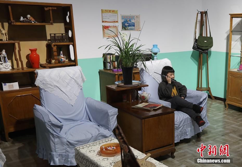 孩子體驗(yàn)“大哥大”。泱波攝