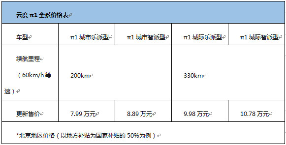 此外,基于本次推出的三年回購計(jì)劃,云度新能源更新了云度π1全系的終端售價(jià),以北京地區(qū)為例: