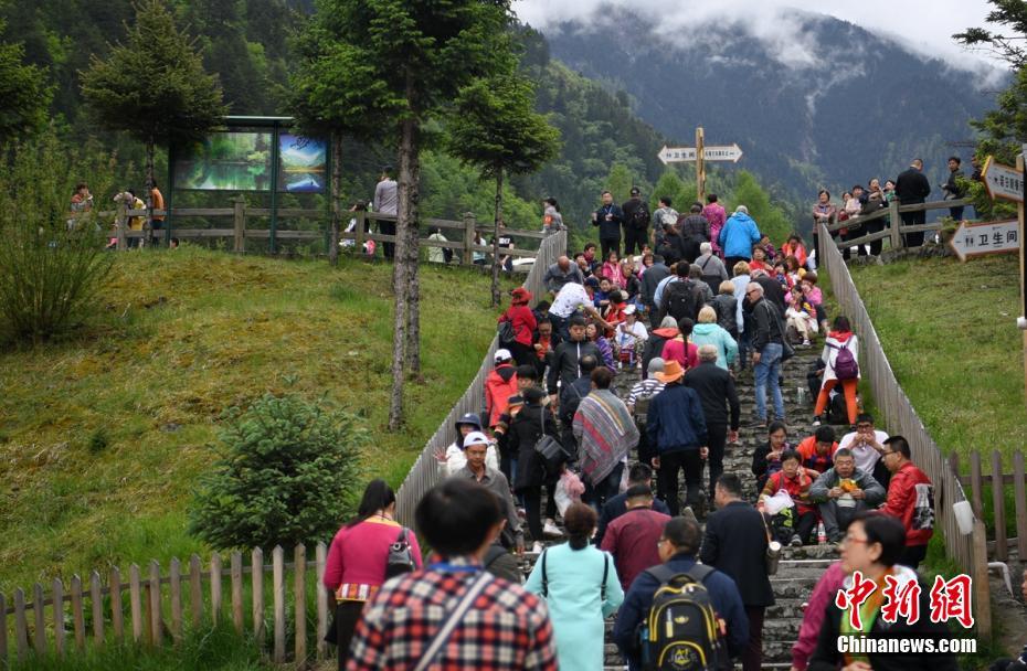 九寨溝景區(qū)內(nèi)的諾日朗中心站游人如織。劉忠俊攝