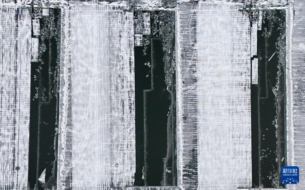 這是松花江哈爾濱段的采冰場(12月9日攝,無人機(jī)照片)。