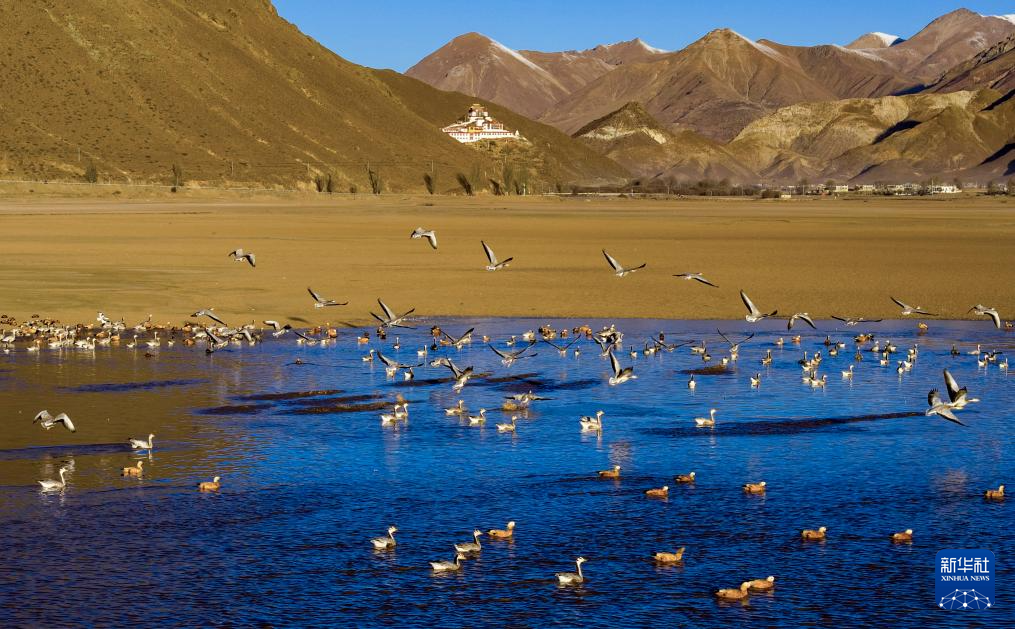冬日時節(jié),拉薩市林周縣迎來大批越冬候鳥,黑頸鶴、斑頭雁、赤麻鴨等候鳥在河谷、湖泊等地覓食、休憩。
