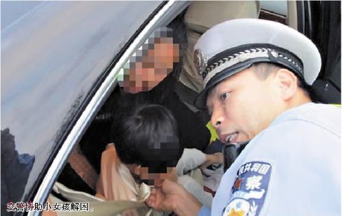 一女童乘車時(shí)被安全帶勒脖 幸交警及時(shí)割斷安全帶解救