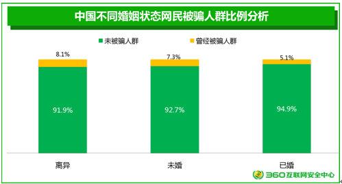 圖3:中國不同婚姻狀態(tài)網(wǎng)民被騙人群比例分析