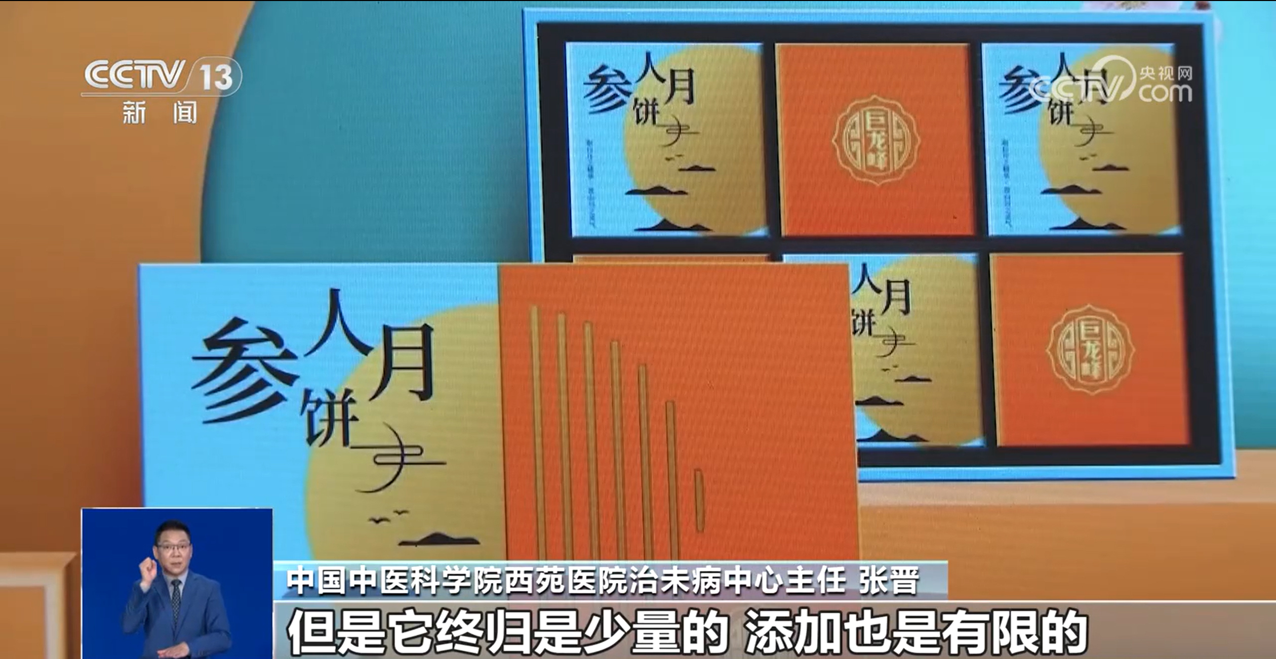 中國(guó)中醫(yī)科學(xué)院西苑醫(yī)院治未病中心主任張晉:我們中醫(yī)講叫是藥三分毒,凡是比如說(shuō)天麻、人參,還有像紅花、三七這一些,它本身就是有比如說(shuō)補(bǔ)氣活血,還有補(bǔ)益肝腎的作用。我們的月餅它是一個(gè)普通的食品,如果我在家自己制作月餅,我們根據(jù)自己的體質(zhì)去選擇,我想放三七,然后放一點(diǎn)人參,或者放一點(diǎn)蟲(chóng)草或者放點(diǎn)天麻,我們因人而異是可以的,但是把這些藥材放到我們普通食品的月餅里面進(jìn)行銷售,這個(gè)大家就要謹(jǐn)慎選擇了。