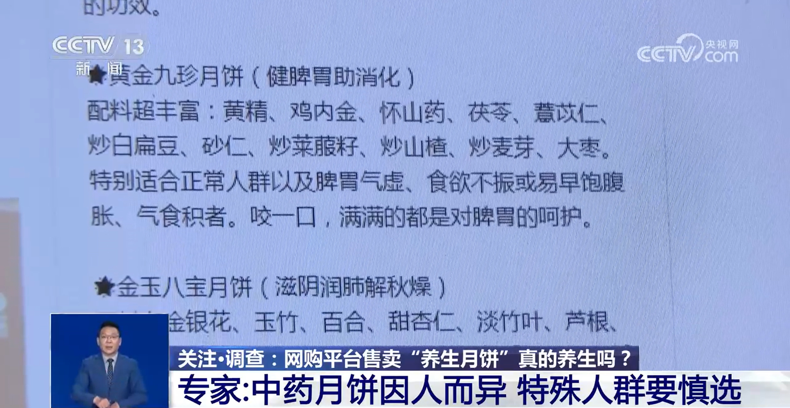 專家指出,網(wǎng)絡(luò)上銷售的部分藥膳月餅宣傳的實(shí)際效果值得商榷。