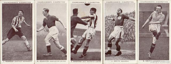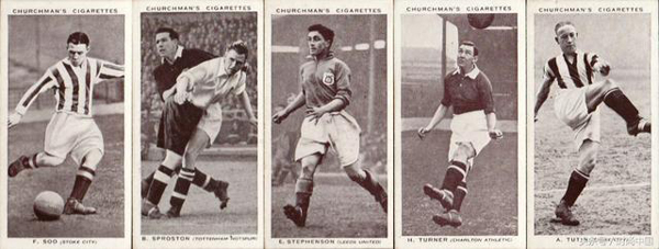 這就是足球迷們如何從每周的體育比賽中了解到他們最喜歡的球員,以及他們的球隊和他們的對手。那些不能被聽到或讀到的東西必須用其他的方法來暗示,而在這里,簡單的香煙卡片的照片和彩色插圖發(fā)揮了它們的作用。