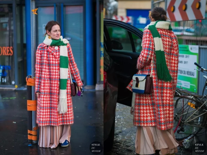 純色大衣佩戴格子的圍巾,簡單的披在肩上,既時尚又為你進一步擋住寒風侵襲,同時又不會把你的脖子勒得太緊而顯得不自然。