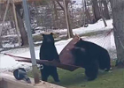 呆萌!美三只黑熊欲爬上吊床卻屢戰(zhàn)屢敗