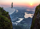 極限運(yùn)動(dòng)者里約高空走繩索引人驚嘆