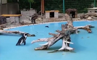 日本動(dòng)物園一企鵝追逐蝴蝶屢戰(zhàn)屢敗