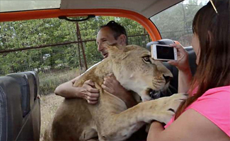 俄動(dòng)物園母獅子對(duì)游客上演撒嬌戲碼