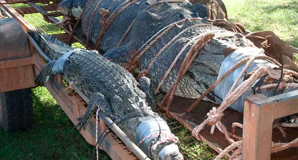 護(hù)河員追蹤10年捕獲巨鱷 體長(zhǎng)4.7米