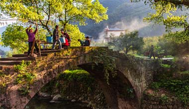 桃源七里:獨(dú)具山里農(nóng)家風(fēng)韻的新興旅游景區(qū) 桃源七里風(fēng)景區(qū)東離杭州245公里,西距婺源140公里,南距武夷山270公里,北距黃山300公里。屬亞熱帶季風(fēng)氣候區(qū),常年平均氣溫在14.3C,四季分明、冬夏長(zhǎng)春秋短、氣候溫和。區(qū)內(nèi)平均海拔650米,面積60.45平方公里,森林覆蓋率達(dá)98%,總?cè)丝?082人。