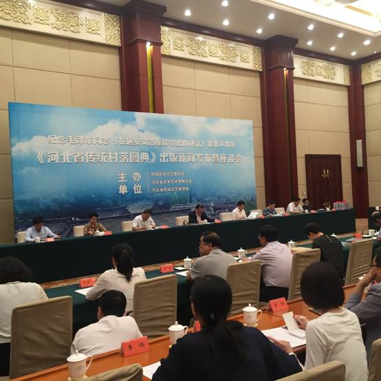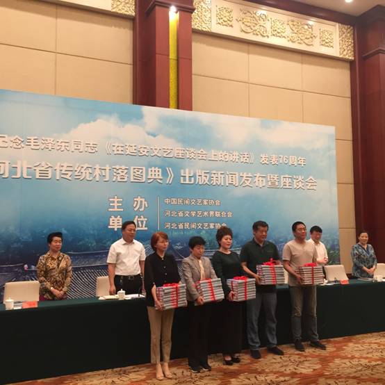 2018年5月23日上午,由中國民間文藝家協(xié)會、河北省文學藝術(shù)界聯(lián)合會、河北省民間文藝家協(xié)會聯(lián)合主辦的“紀念毛澤東同志《在延安文藝座談會上的講話》發(fā)表76周年——《河北省傳統(tǒng)村落圖典》出版新聞發(fā)布及座談會”在石家莊市太行國賓館隆重舉行。中國文聯(lián)副主席、河北省政協(xié)副主席邊發(fā)吉,中國民協(xié)分黨組成員、副秘書長周燕屏,中國文聯(lián)民間文藝藝術(shù)中心主任徐岫娟,中共河北省委宣傳部副部長史建偉,河北省文聯(lián)黨組書記、副主席解曉勇,河北省文聯(lián)黨組成員、副主席路皓,河北省文聯(lián)黨組成員、副主席祁海峰,中國民協(xié)顧問、河北省民協(xié)主席鄭一民、河北教育出版社副總編輯郝建國等領(lǐng)導(dǎo)和專家學者出席,以此活動來紀念毛澤東同志發(fā)表《在延安文藝座談會上的講話》76周年。