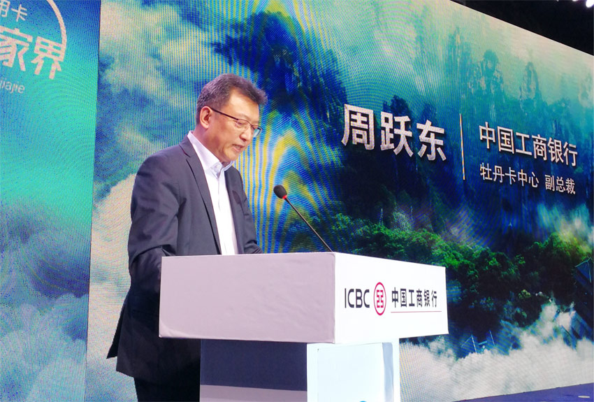 中國工商銀行牡丹卡中心副總裁周躍東在“愛購張家界”啟動儀式上講話