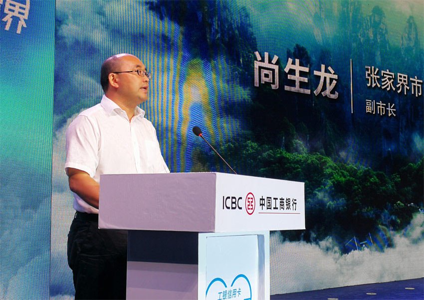 張家界市政府副市長尚生龍在“愛購張家界”啟動儀式上講話