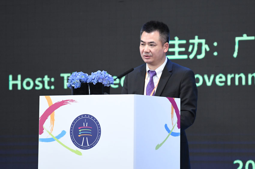 中國南方航空集團(tuán)有限公司市場營銷管理委員會副主任兼電子商務(wù)部總經(jīng)理黃文強(qiáng)先生發(fā)言 (廣州市政府新聞辦公室 供圖)