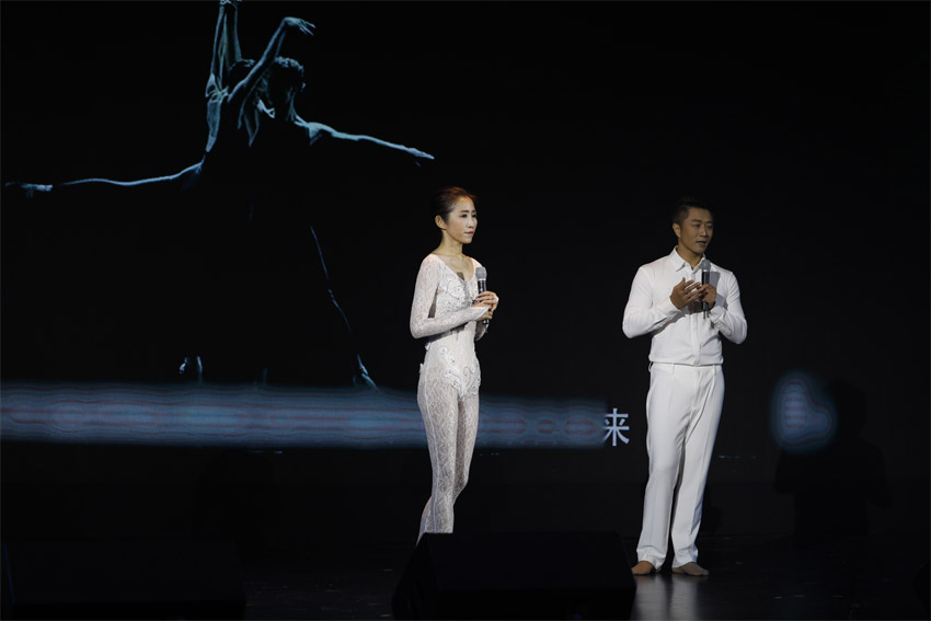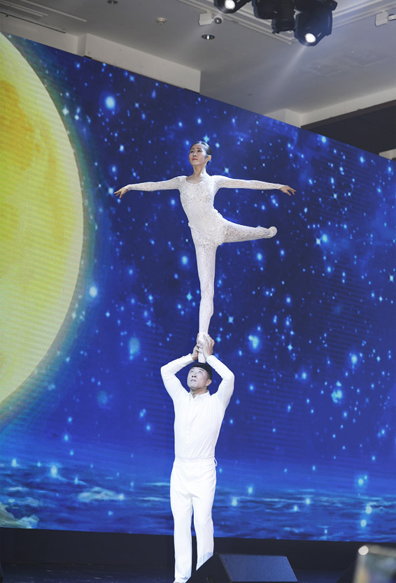 國(guó)際雜技比賽最高獎(jiǎng)“金小丑”獎(jiǎng)獲得者吳正丹、魏葆華夫婦肩上芭蕾展演,并講述中國(guó)藝術(shù)站上世界舞臺(tái)的故事。 (廣州市政府新聞辦公室 供圖)