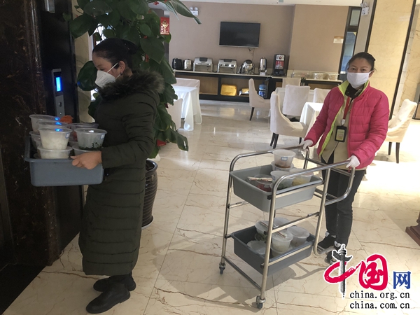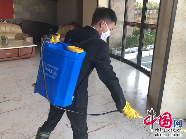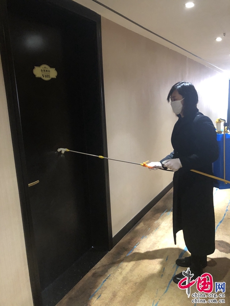 為切實(shí)做好酒店疫情防控工作,金周溫泉酒店對(duì)滯留旅客房間進(jìn)行每日正常續(xù)住打掃,床上用品兩天一換,采取以家庭為單位的方式盡量將客人安排在不同樓層入住。根據(jù)酒店的“7”字型的結(jié)構(gòu),將客人安排在兩端,使其最大程度地分開。大堂公共區(qū)域每接待一位旅客就消毒一次,樓層走道空房每天消毒兩次,客住房間每天消毒兩次。每次消毒工作按疾控中心要求進(jìn)行登記,然后由專職人員進(jìn)行檢查。酒店所有垃圾都按照“醫(yī)用垃圾”進(jìn)行處理,每天由市婦幼保健院收走處理。