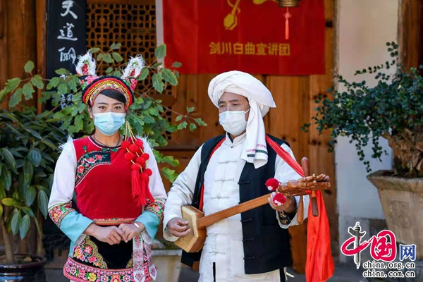 “各位父老鄉(xiāng)親要聽清,冠狀病毒好驚心,如何避免不傳染,第一要務(wù)防范真,勤洗手來戴口罩?!边B日來,這首《白鄉(xiāng)齊心戰(zhàn)疫情》的白族調(diào)在全縣的93個村“小喇叭”唱響,并在微信朋友圈刷屏,深受大家喜愛?!鞍奏l(xiāng)劍川”微信公眾號點推送的視頻擊量超過3萬,劍川縣融媒體中心官方抖音號推送的視頻點擊量單條超過55萬余次?!皩ξ疫@個不認(rèn)識字的老人,這樣的白族調(diào),一聽就明白了,我很愛聽,歌里怎么唱我們就怎么做了?!钡槟湘?zhèn)回龍村村民施福花說。施?;?6歲了,她不識字,聽到這些白族調(diào),感覺很親切,一下子就聽懂了。