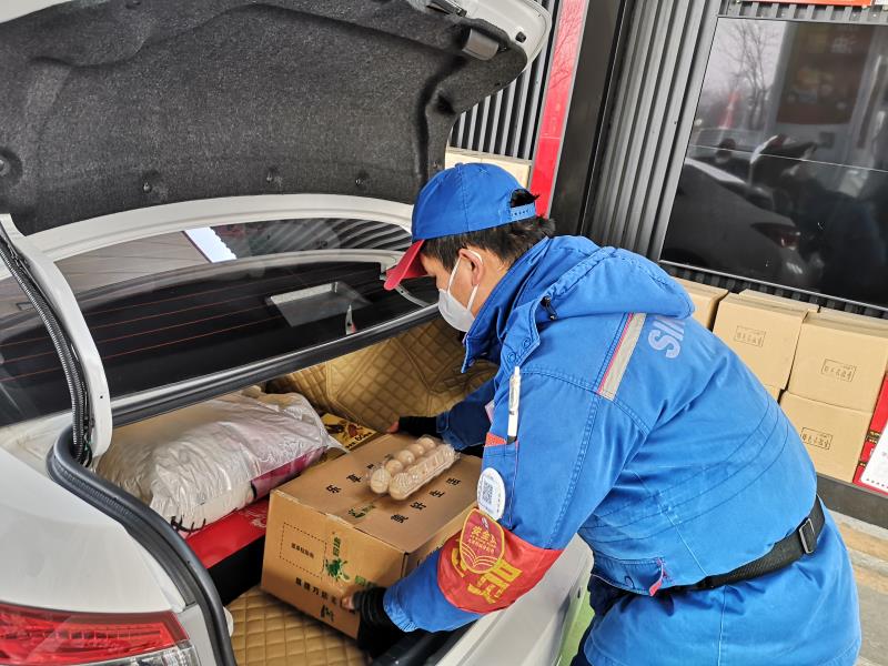 “親愛的顧客,您的訂單已打包完成,將由店員為您配送到車。”2月15日,車主劉女士在展覽路加油站加油時從“易捷加油”APP上下單購買了一箱蔬菜。手機支付成功后,不到2分鐘,加油員就把商品送進了后備箱。加油結(jié)束后,劉女士直接駛出加油站,全程沒有下車,也沒有和加油員肢體接觸。