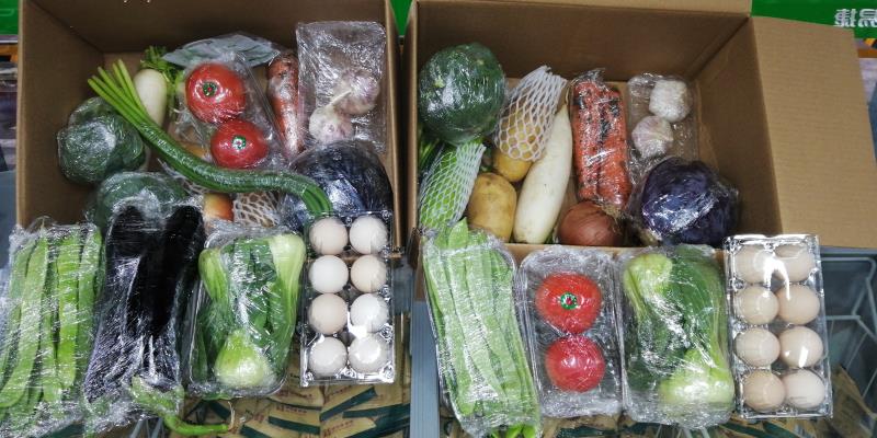 展覽路加油站是北京石油第一批推出“安心買菜”業(yè)務(wù)的加油站?!耙环菔卟硕Y包組合大概在14斤左右,包含西紅柿、豆角、胡蘿卜、西蘭花等10多種蔬菜和10個雞蛋,可滿足三口之家三天左右的需求?!甭檿詵|介紹道。