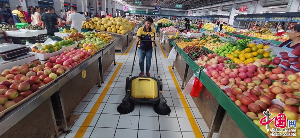 (對集貿(mào)市場進行清掃 王承吉攝)