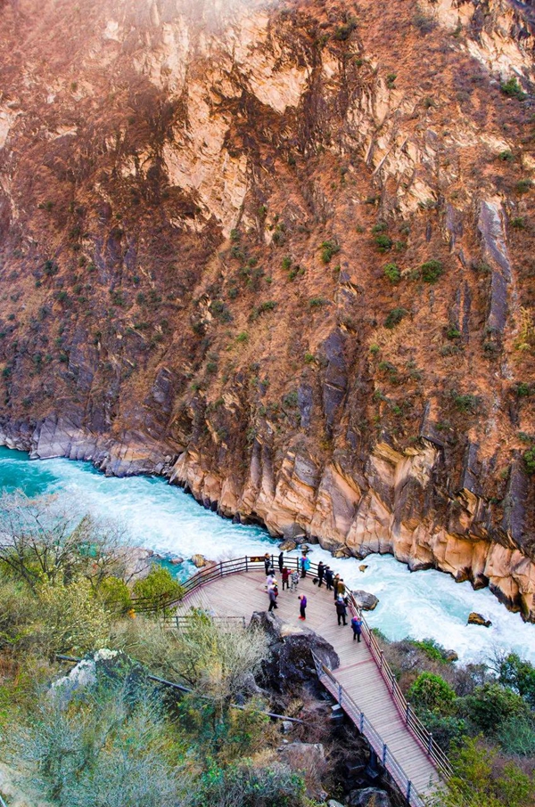 當(dāng)你站在山縫之間,腳下是湍急的江水、遠(yuǎn)處是巍峨的雪山、身旁是幽深的峽谷、驚險的絕壁棧道,你才明白,虎跳峽的真實面目,唯有徒步才能瞥見,那些躲在世界之外的風(fēng)花雪月,唯有翻山越嶺才能抵達(dá)。