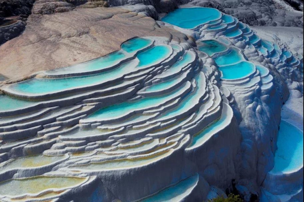 11月,白水臺在蒼山的掩映中層層鋪展,五光十色,流光溢彩,像是仙人留下的足跡,獨自遺落在時光盡頭。
