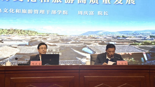 10月30日,麗江市邀請(qǐng)到中央文化和旅游管理干部學(xué)院院長(zhǎng)周慶富為全市文旅行業(yè)干部職工和從業(yè)者做了“深入學(xué)習(xí)習(xí)近平總書(shū)記重要講話精神,著力推動(dòng)文化和旅游高質(zhì)量發(fā)展”的主題宣講。麗江市委常委、常務(wù)副市長(zhǎng)木崇根,麗江市文化和旅游局黨組書(shū)記、局長(zhǎng)張建華,麗江古城保護(hù)管理局常務(wù)副局長(zhǎng)和麗軍,麗江市旅投集團(tuán)董事長(zhǎng)王世竑,麗江旅游職業(yè)培訓(xùn)學(xué)??偨?jīng)理劉文強(qiáng)等領(lǐng)導(dǎo)參加活動(dòng)。