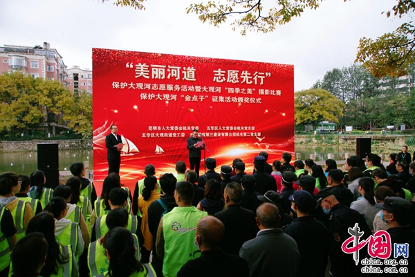 11月17日,“美麗河道志愿先行”保護(hù)大觀河志愿服務(wù)活動(dòng)暨大觀河“四季之美”攝影比賽、保護(hù)大觀河“金點(diǎn)子”征集活動(dòng)頒獎(jiǎng)儀式在云南省昆明市五華區(qū)大觀河畔舉行。