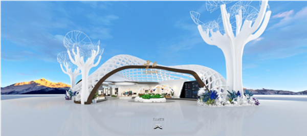 “云展廳”以“云上彩云南”為主題,將云南瑰麗的山川地形元素和文化符號布局到空間設(shè)計中,各項展品點綴其中,利用3D、VR等技術(shù)搭建出一個現(xiàn)代時尚充滿科技感和云南特色的展示空間?;ヂ?lián)網(wǎng)信息技術(shù)和數(shù)字交互手段連接起各展廳,主要設(shè)有脫貧攻堅成果主題展和云南16個地州VR沉浸式體驗區(qū),“金木土石布”精品展、省屬文化企業(yè)展、楊麗萍藝術(shù)展,以及書畫音樂影視動漫演藝展。