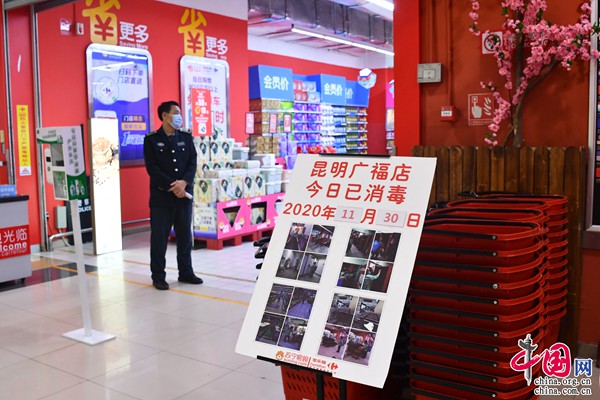 “每隔兩小時(shí)便會(huì)使用1比500的84消毒液進(jìn)行一次消毒?!蔽魃絽^(qū)家樂福(廣福店)安全管理部經(jīng)理王愛光介紹,作為人流量較大的公共場(chǎng)所,超市扶梯、購(gòu)物車、購(gòu)物籃、衛(wèi)生間、公共區(qū)域等都是消毒重點(diǎn),并且每完成一遍工作人員會(huì)上報(bào)至“云南省常消毒行動(dòng)”小程序進(jìn)行記錄,最后拍照記錄,裝訂成冊(cè)。
