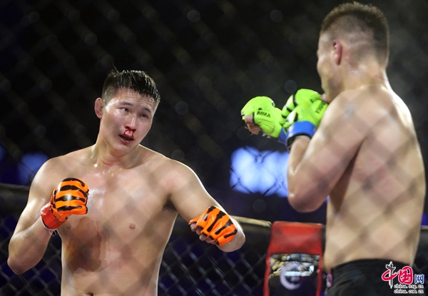 據(jù)悉,2020‘句町拳王’一帶一路國際金腰帶暨‘自強(qiáng)誠信感恩’扶貧公益答謝賽一共有8場對決,嚴(yán)啟慧將在最后一輪對決中出場。雖然前七場比賽被看成是墊場賽,但選手們的全力以赴,讓每一場比賽都變得精彩紛呈,現(xiàn)場觀眾大呼過癮,特別是第7場巴哈特與孫樹偉的金腰帶爭奪戰(zhàn),更是令人熱血膨脹。這是本屆比賽唯一的一場金腰帶爭奪戰(zhàn),作為衛(wèi)冕冠軍巴哈特將接受孫樹偉的挑戰(zhàn)。之前雙方有一次對決,結(jié)果雙方戰(zhàn)平,這一次兩人的決戰(zhàn)來到了廣南,作為金腰帶擁有者巴哈特賽前就表示,將不惜一切代價(jià)保住屬于自己的金腰帶,而孫樹偉一直對金腰帶虎視眈眈。經(jīng)過激烈的角逐,兩位選手聯(lián)袂展現(xiàn)出綜合格斗最大的魅力,最終,巴哈特以30比27獲勝。