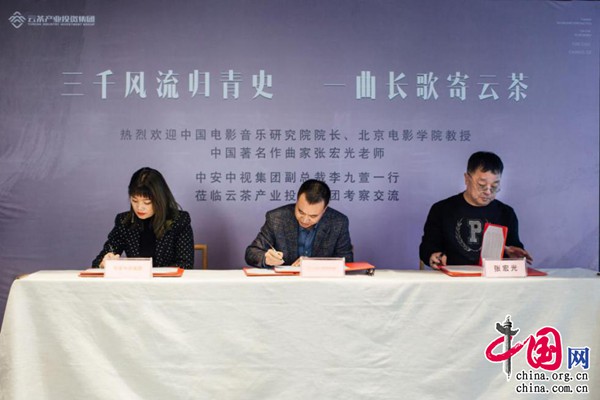 12月12日,中國(guó)電影音樂(lè)研究院院長(zhǎng)、北京電影學(xué)院教授、中國(guó)著名作曲家張宏光,中安中視集團(tuán)副總裁李九萱一行蒞臨云茶產(chǎn)業(yè)投資集團(tuán)走訪交流,并舉行了云茶產(chǎn)業(yè)主題曲——《云茶長(zhǎng)歌》作詞、作曲及制作發(fā)行三方合作簽約儀式。