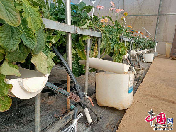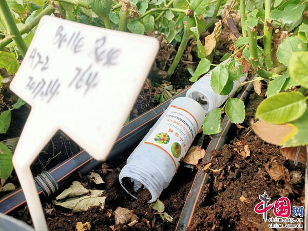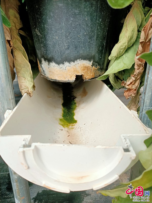 在基質(zhì)種植槽下,水肥管道鋪設(shè)在花株之間,采取滴管、滲灌等方式,有效提高氮、磷的滲透,這種精準(zhǔn)化水肥一體化技術(shù),極大地提高施肥的精準(zhǔn)度,在節(jié)約肥料50%左右的基礎(chǔ)上,回收了植株吸收不了的肥料,循環(huán)利用。經(jīng)過測算,這個技術(shù)的層層過濾下,水肥的流失比例可以忽略不計。