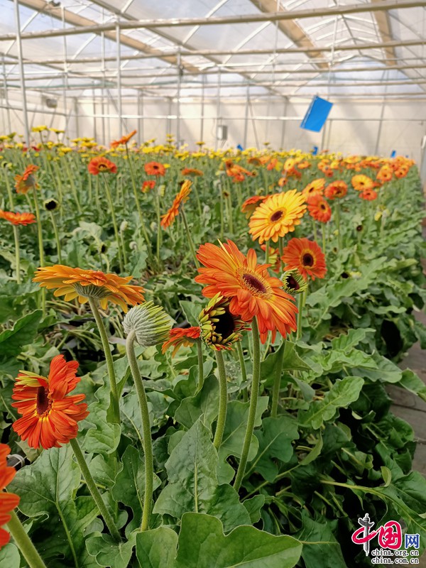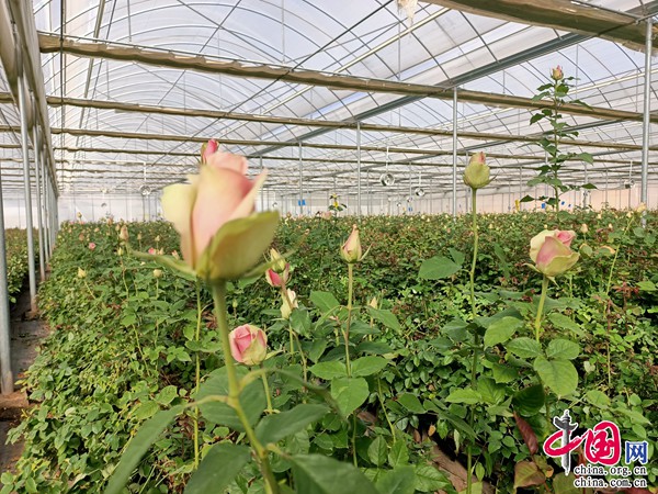 有了基質(zhì)種植、精準(zhǔn)的水肥一體施用、最先進(jìn)的加溫系統(tǒng)及生物防治系統(tǒng)幾重呵護(hù)下的鮮切花,有著抗病性強(qiáng)、花枝粗壯、花頭大、瓶插期長等特點,深受國內(nèi)廣大消費者的好評和青睞。經(jīng)過幾年的發(fā)展,雙河彝族鄉(xiāng)鮮切花產(chǎn)量逐年攀升,目前鮮切花年產(chǎn)量達(dá)1500萬枝?!傲制婷倒濉边€榮獲了2020年云南省十大名花,種植有玫瑰、非洲菊、紫苑等100多個國際流行新品種,有35個玫瑰新品種,13個非洲菊新品種在中國市場推廣。